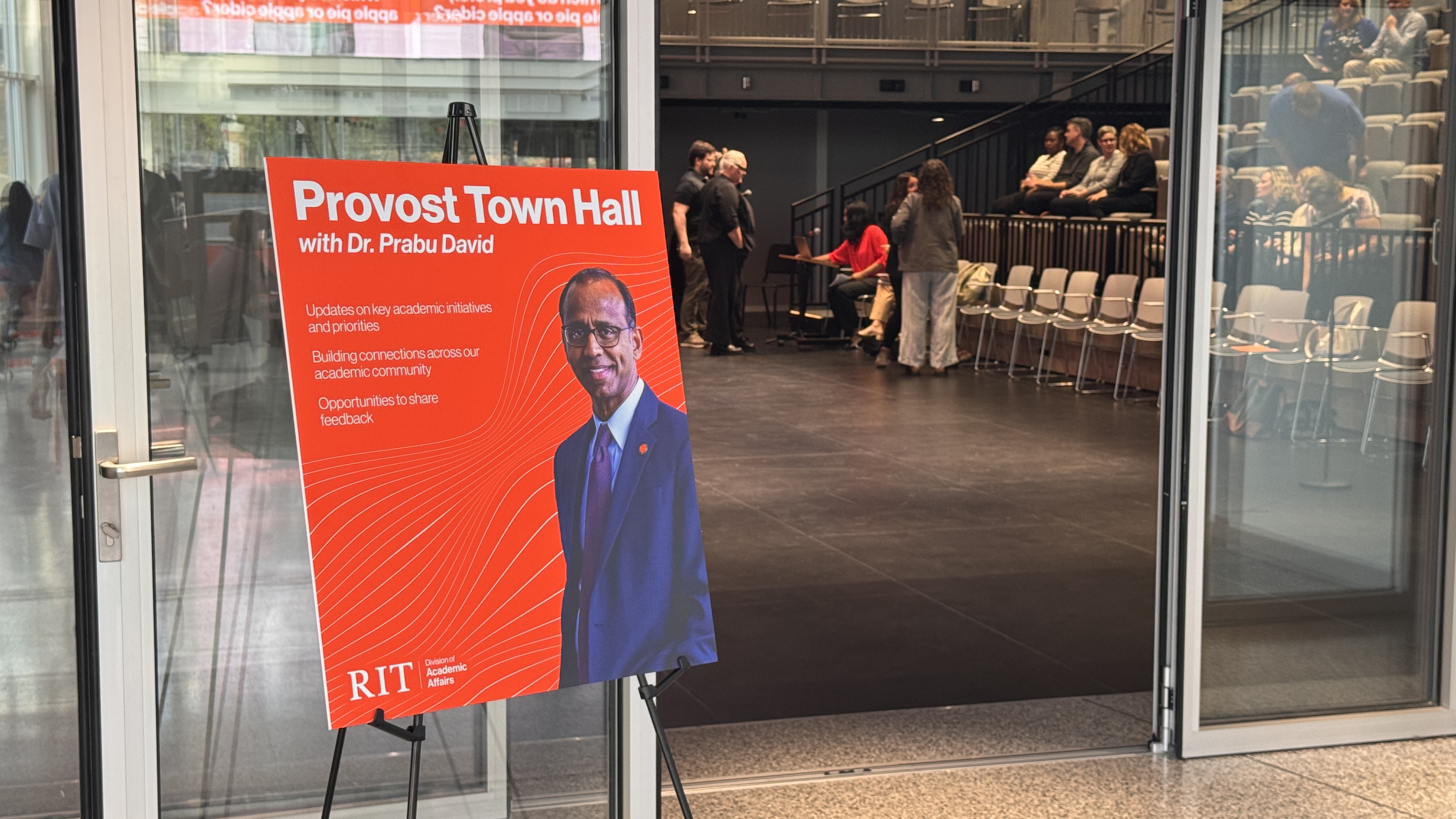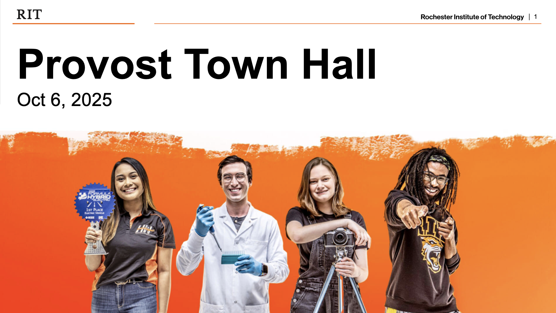 I designed a striking welcome sign for a provost's town hall event, utilizing Photoshop and Illustrator to create a visually engaging piece that greeted guests as they arrived. In addition to the welcome sign, I collaborated on the design of the presentation slides, ensuring they were not only compelling but also adhered to RIT's brand guidelines. My work focused on transforming key information into a clear and impactful visual story, enhancing the overall experience for attendees. This project showcases my skills in graphic design, branding, and visual storytelling for high-profile events.